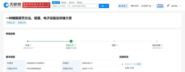 [CNMO科技消息]11月18日,赛力斯汽车有限公司申请的“一种睡眠调节方法、装置、电子设备及存储介质”专利公布。